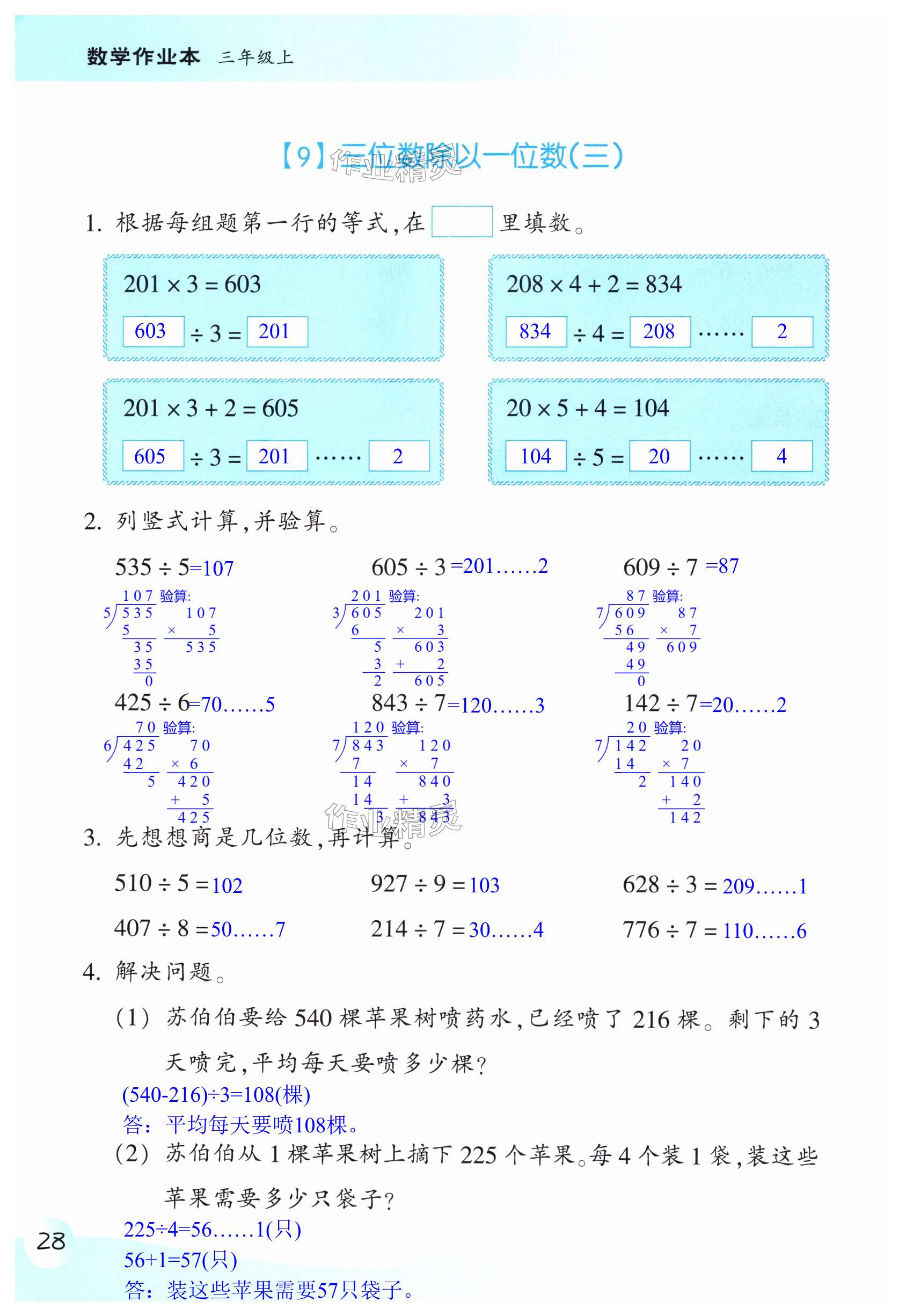 注:目前有些书本章节名称可能整理的还不是很完善,但都是按照顺序排列的,请同学们按照顺序仔细查找。练习册 2025年作业本浙江教育出版社三年级数学上册浙教版 答案主要是用来给同学们做完题方便对答案用的,请勿直接抄袭。