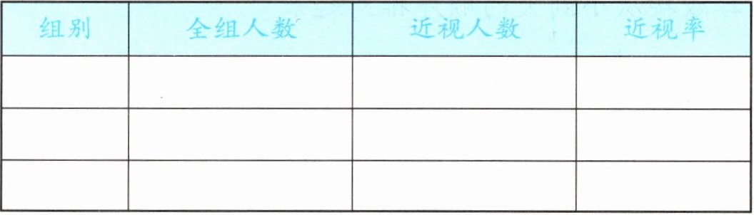 5.分别统计班里任意三个组的人数与眼睛近视的人数,把表填完整。