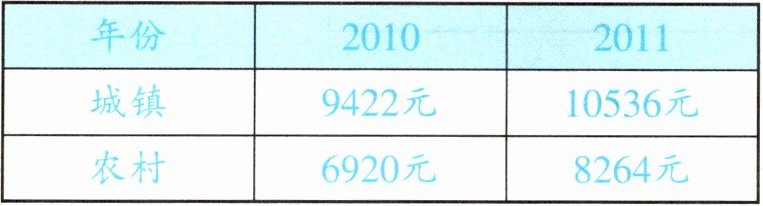 (2) 2010 年和 2011 年,某地城镇和农村居民年人均可支配收入情况如下表。