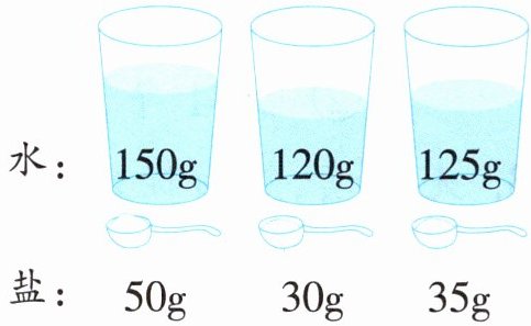 5. 如图,在三杯水中分别加入对应的盐。哪杯水最咸?