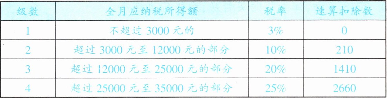 4. 2018 年,我国将个人所得税的缴纳基数提高到 5000 元,超过 5000 元的部分,按照下表收税。