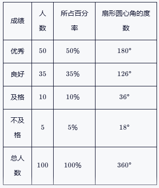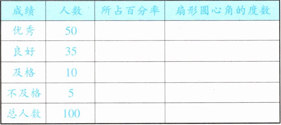 2. 下面是 100 名小学生的期终数学成绩统计表。先填表,再制作扇形统计图。