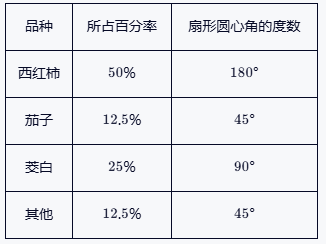 1.一个蔬菜基地中,各种蔬菜的种植面积如下表。