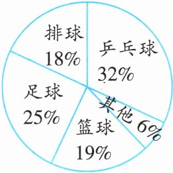 (1)因为$32\%\gt25\%\gt19\%\gt18\%\gt6\%$,所以乒乓球运动最受欢迎。