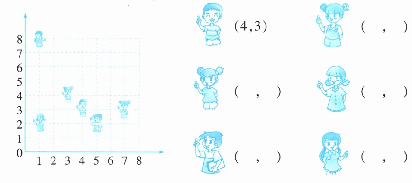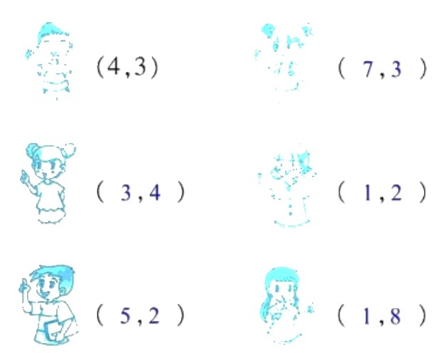 1. 用数对标出人物的位置。