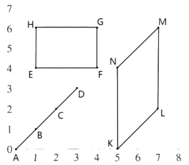 )形。(3) $K(5,0),L(7,2),M(7,6),N(5,4)$。