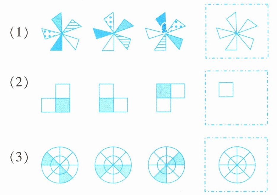 1. 根据前面3个图形的变化规律,把第4个图形画完整。