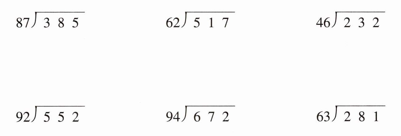 $220 ÷ 52 =$ $399 ÷ 83 =$