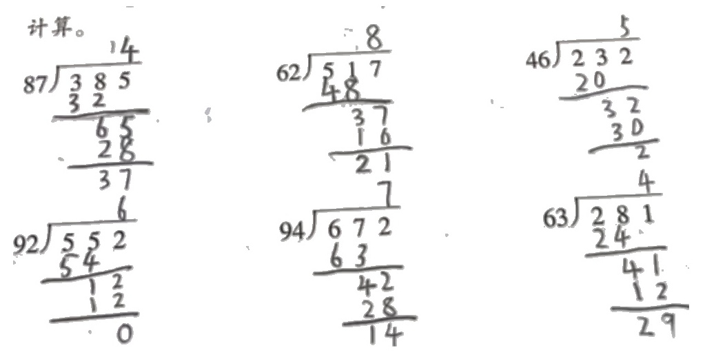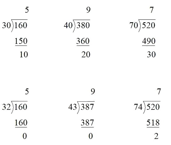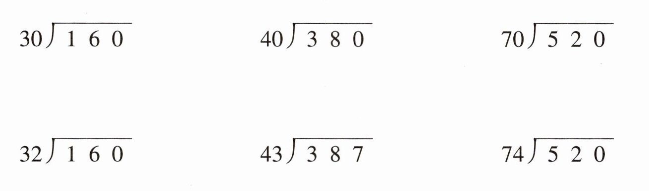 $120 ÷ 30 = □$ $400 ÷ 50 = □$ $630 ÷ 70 = □$