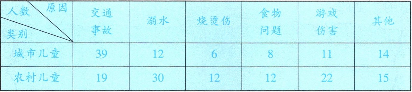 (1)答:在城市儿童中,交通事故导致的安全事故最多,在农村儿童中是溺水。