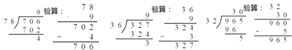 706÷78 = 9……4 327÷36 = 9……3 965÷32 = 30……5