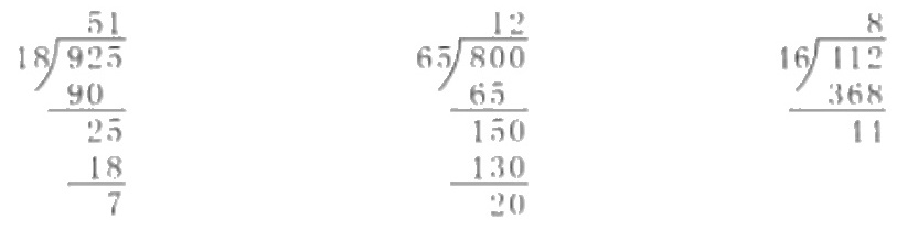$925 ÷ 18$ $800 ÷ 65$ $412 ÷ 46$