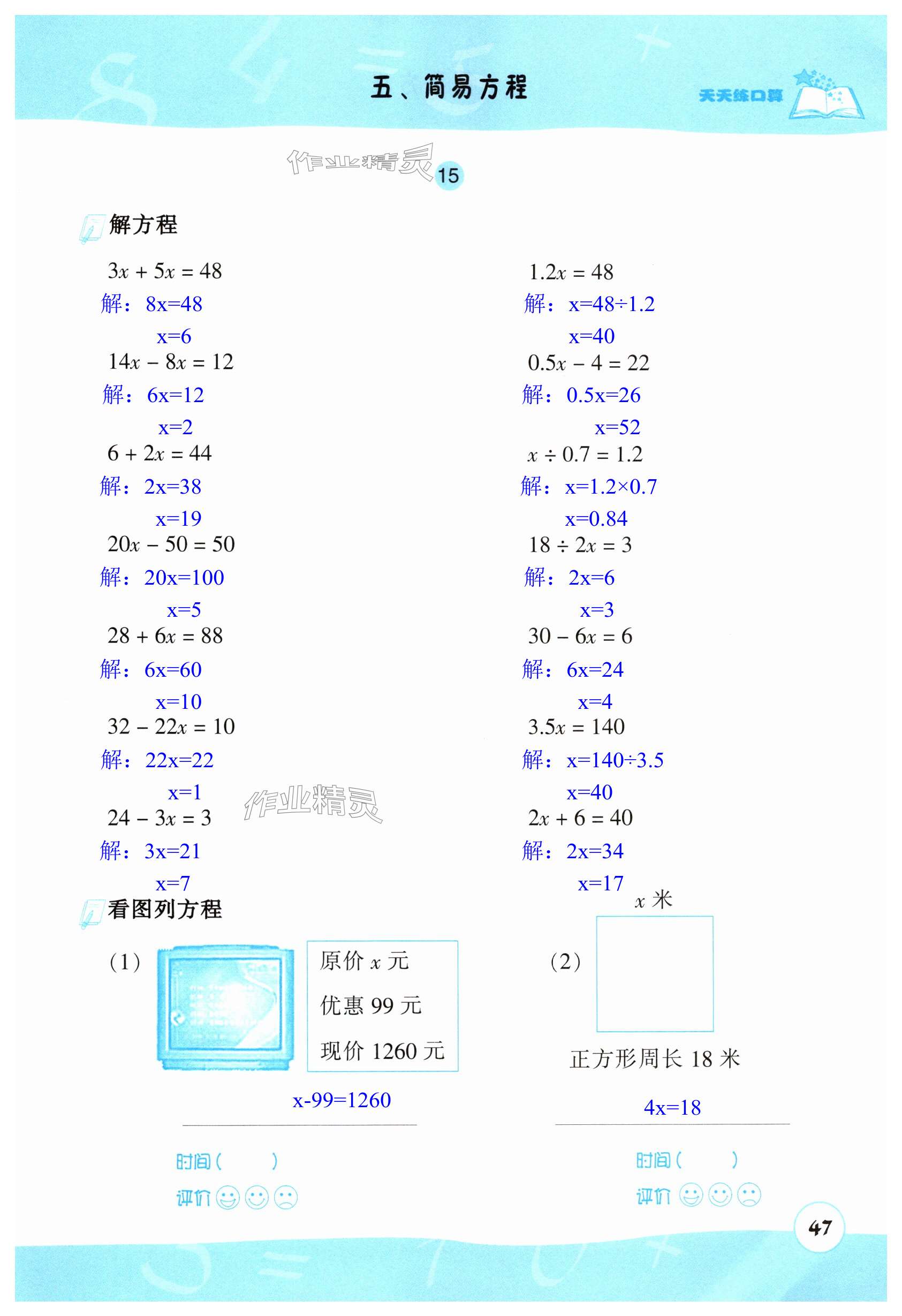 注:目前有些书本章节名称可能整理的还不是很完善,但都是按照顺序排列的,请同学们按照顺序仔细查找。练习册 2024年天天练口算五年级数学上册人教版 答案主要是用来给同学们做完题方便对答案用的,请勿直接抄袭。