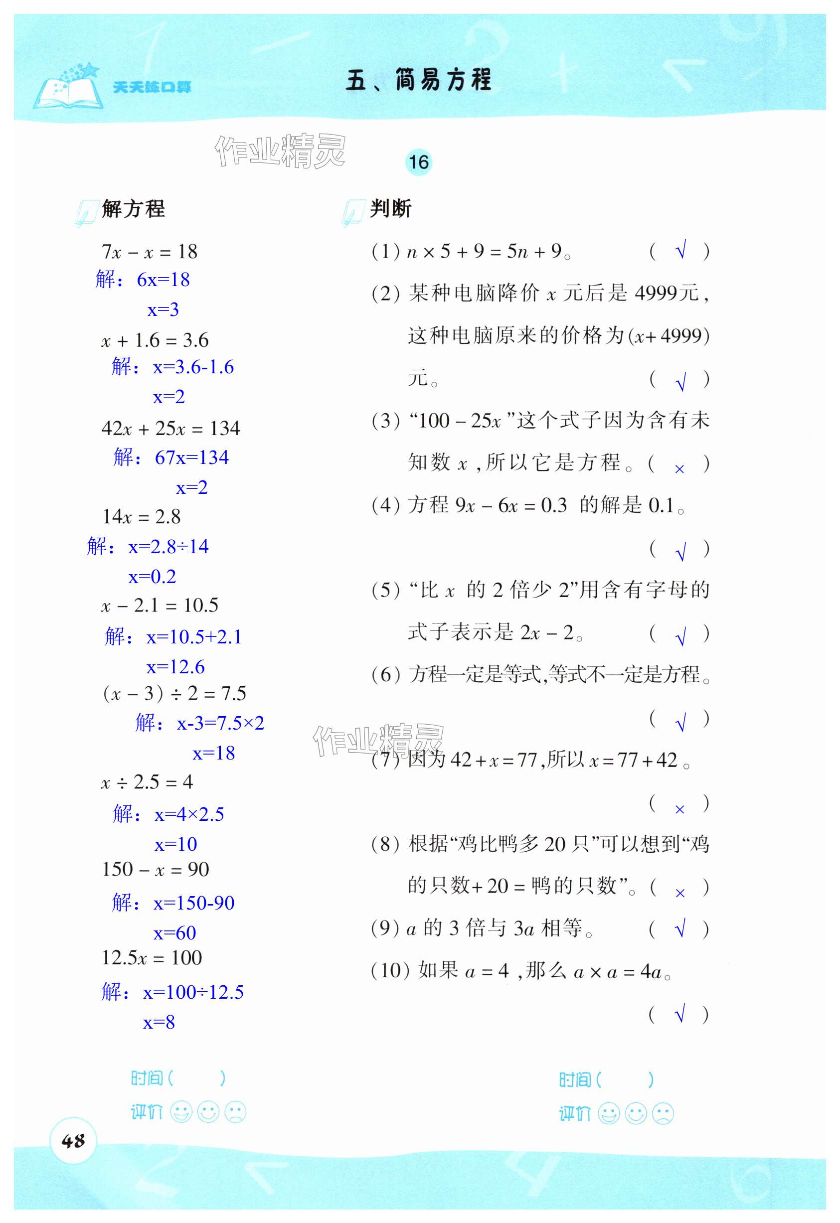 注:目前有些书本章节名称可能整理的还不是很完善,但都是按照顺序排列的,请同学们按照顺序仔细查找。练习册 2024年天天练口算五年级数学上册人教版 答案主要是用来给同学们做完题方便对答案用的,请勿直接抄袭。
