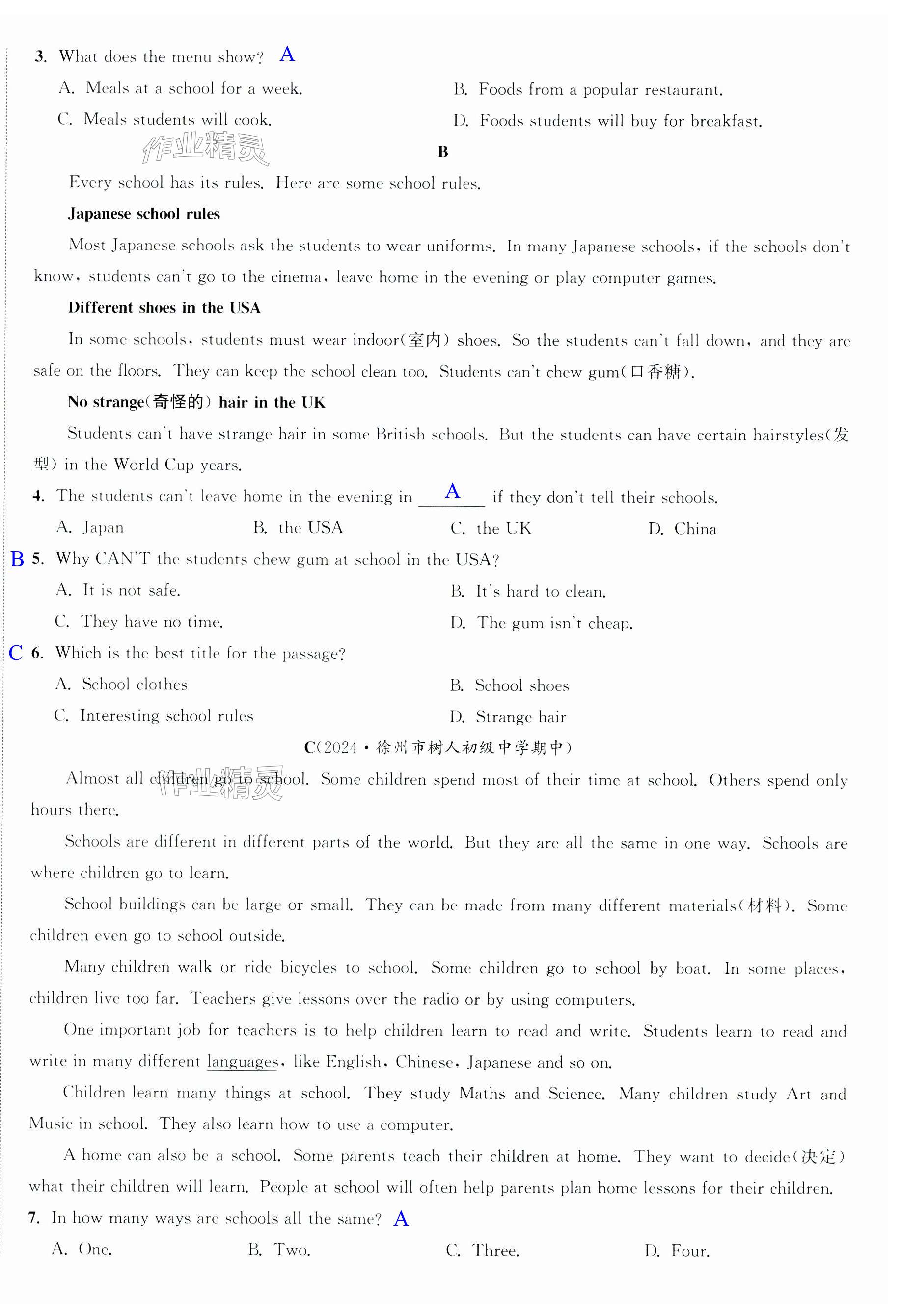 注:目前有些书本章节名称可能整理的还不是很完善,但都是按照顺序排列的,请同学们按照顺序仔细查找。练习册 2024年金钥匙提优训练课课练七年级英语上册译林版徐州专版 答案主要是用来给同学们做完题方便对答案用的,请勿直接抄袭。