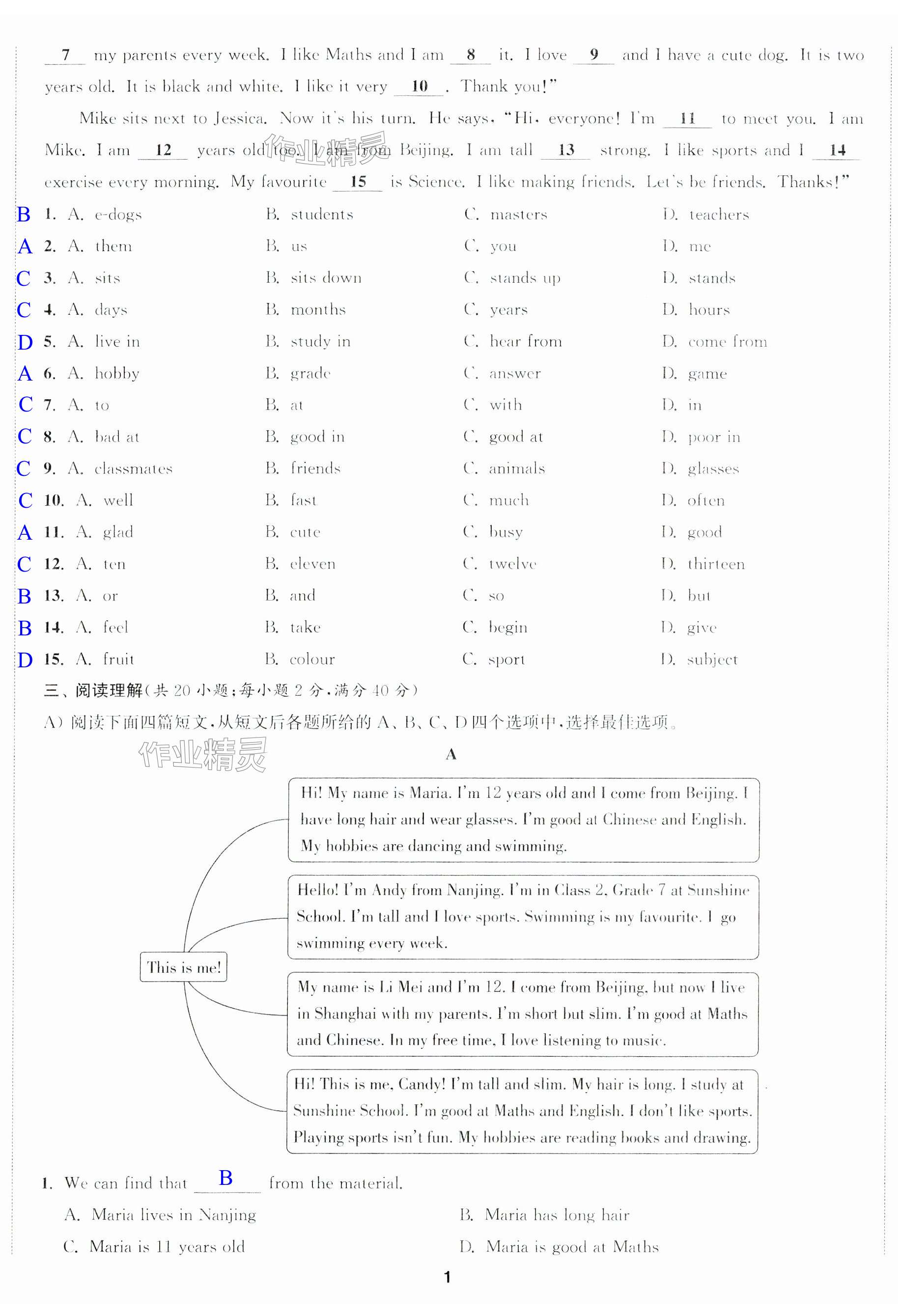 注:目前有些书本章节名称可能整理的还不是很完善,但都是按照顺序排列的,请同学们按照顺序仔细查找。练习册 2024年金钥匙提优训练课课练七年级英语上册译林版徐州专版 答案主要是用来给同学们做完题方便对答案用的,请勿直接抄袭。
