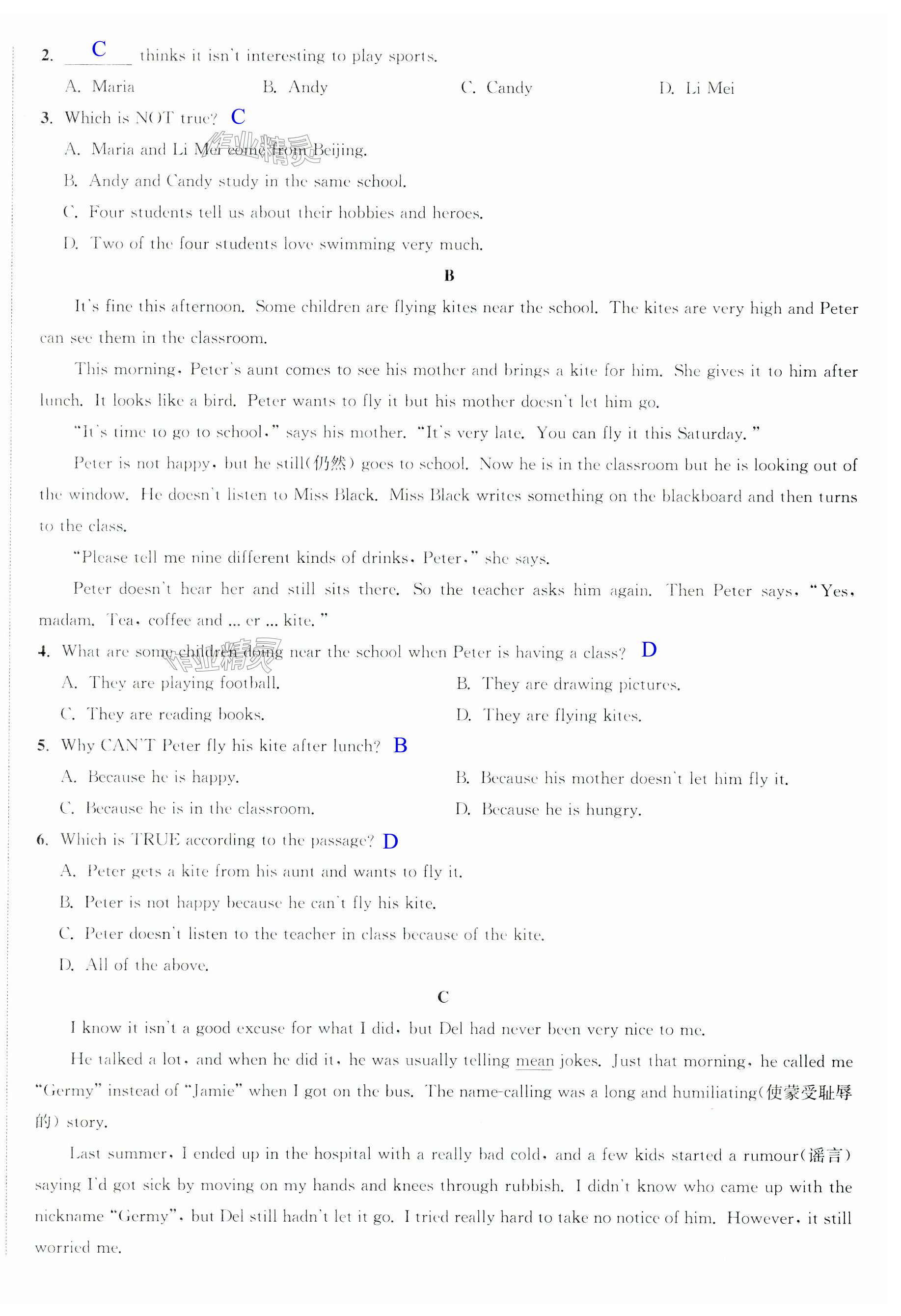 注:目前有些书本章节名称可能整理的还不是很完善,但都是按照顺序排列的,请同学们按照顺序仔细查找。练习册 2024年金钥匙提优训练课课练七年级英语上册译林版徐州专版 答案主要是用来给同学们做完题方便对答案用的,请勿直接抄袭。