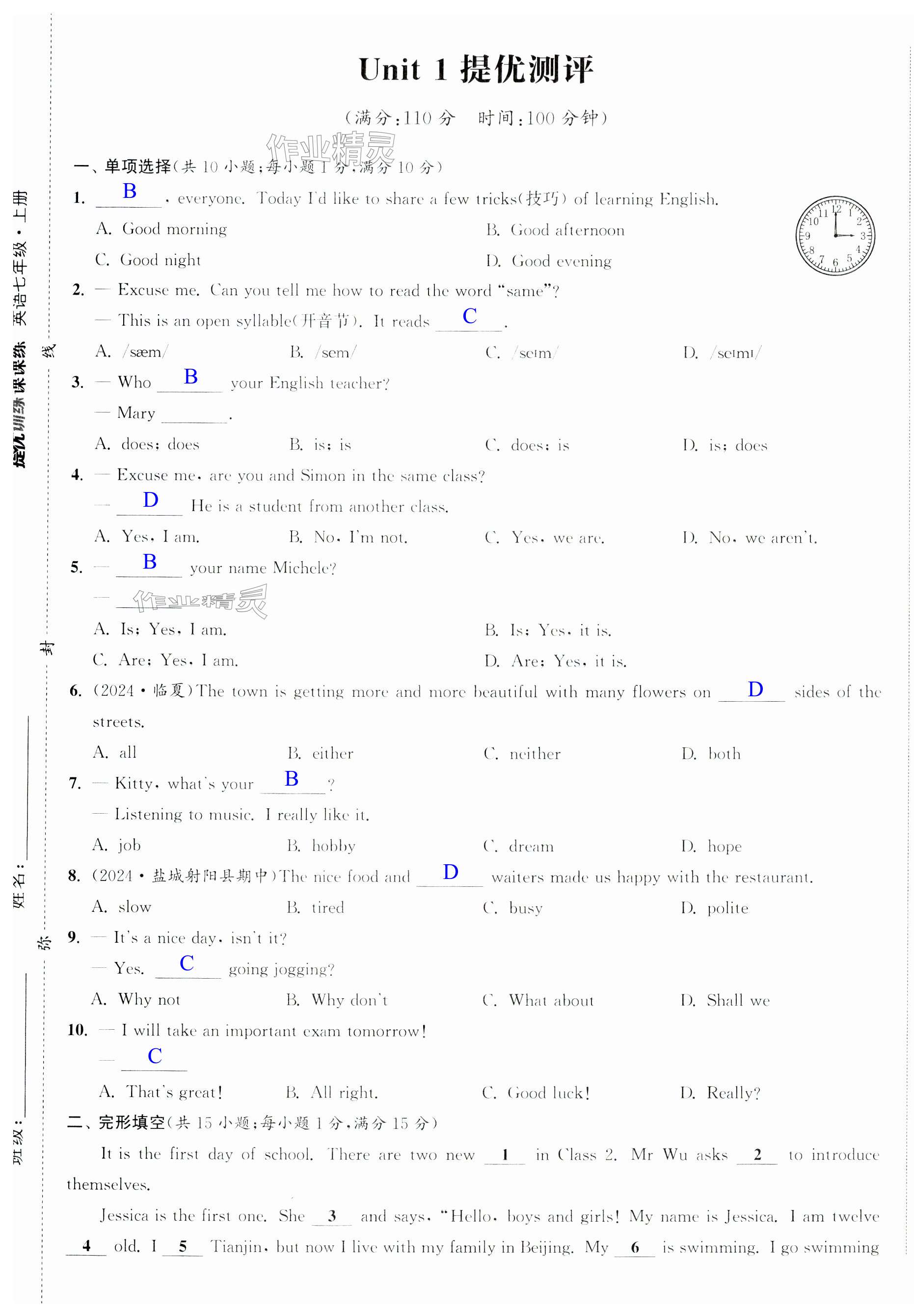 注:目前有些书本章节名称可能整理的还不是很完善,但都是按照顺序排列的,请同学们按照顺序仔细查找。练习册 2024年金钥匙提优训练课课练七年级英语上册译林版徐州专版 答案主要是用来给同学们做完题方便对答案用的,请勿直接抄袭。