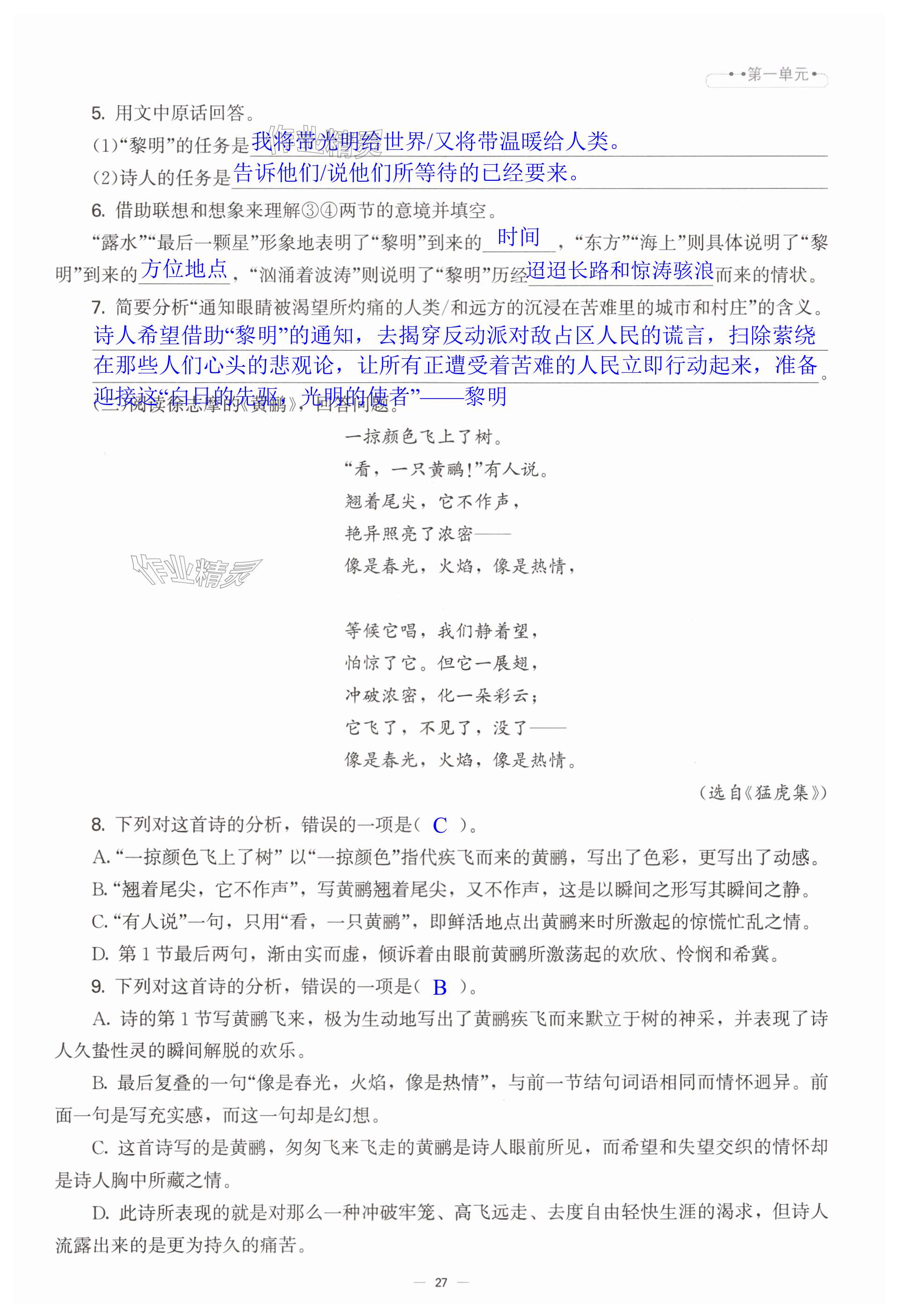 注:目前有些书本章节名称可能整理的还不是很完善,但都是按照顺序排列的,请同学们按照顺序仔细查找。练习册 2024年初中同步练习册九年级语文上册人教版北京师范大学出版社 答案主要是用来给同学们做完题方便对答案用的,请勿直接抄袭。