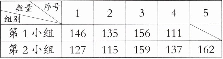 | 第2小组 | 127 | 115 | 159 | 137 | 162 |