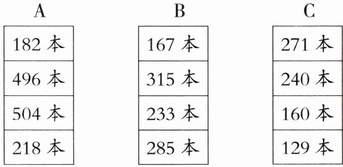 10. 请你用最快的速度算出哪个书柜里的书最多,然后按从多到少的顺序排一排。