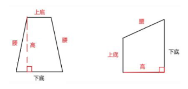 4. 画出下列梯形底边上的高,并标出梯形的上底和腰。