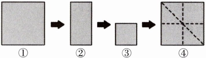 4. 将一张正方形的纸连续对折两次,打开后沿一条对角线对折,再打开。(如下图所示。)
