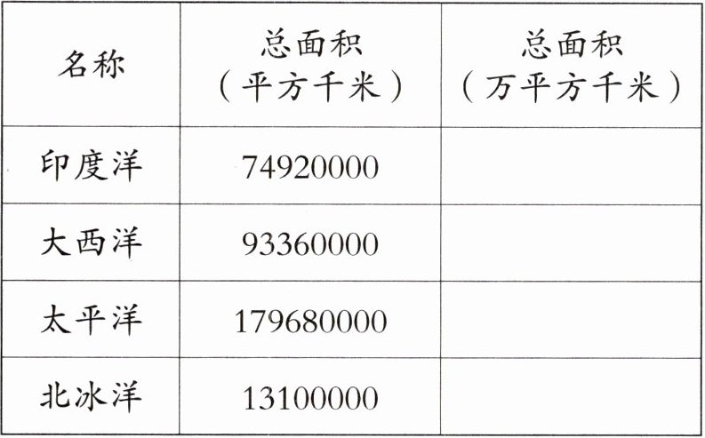 3. 请你将四大洋的面积改写成用“万”作单位的数,并将面积按从小到大的顺序排列。
