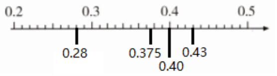 (3)在下图中找到0.28、0.40、0.43、0.375的位置,画出相对应的点并标注上数。