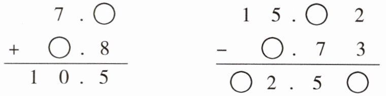 $\begin{array}{r} 7.◯ \\ +◯.8\\ \hline 10.5\end{array} $