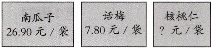 (3)核桃仁的单价是话梅的3倍,核桃仁的单价是多少?妈妈买了4袋核桃仁,需要花多少钱?