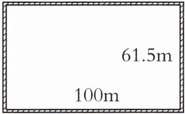 17. 如下图所示,阴影部分是一条宽度为1.5m的小路,小路内部是一个长100m、宽61.5m的人工湖。小路的面积是多少?