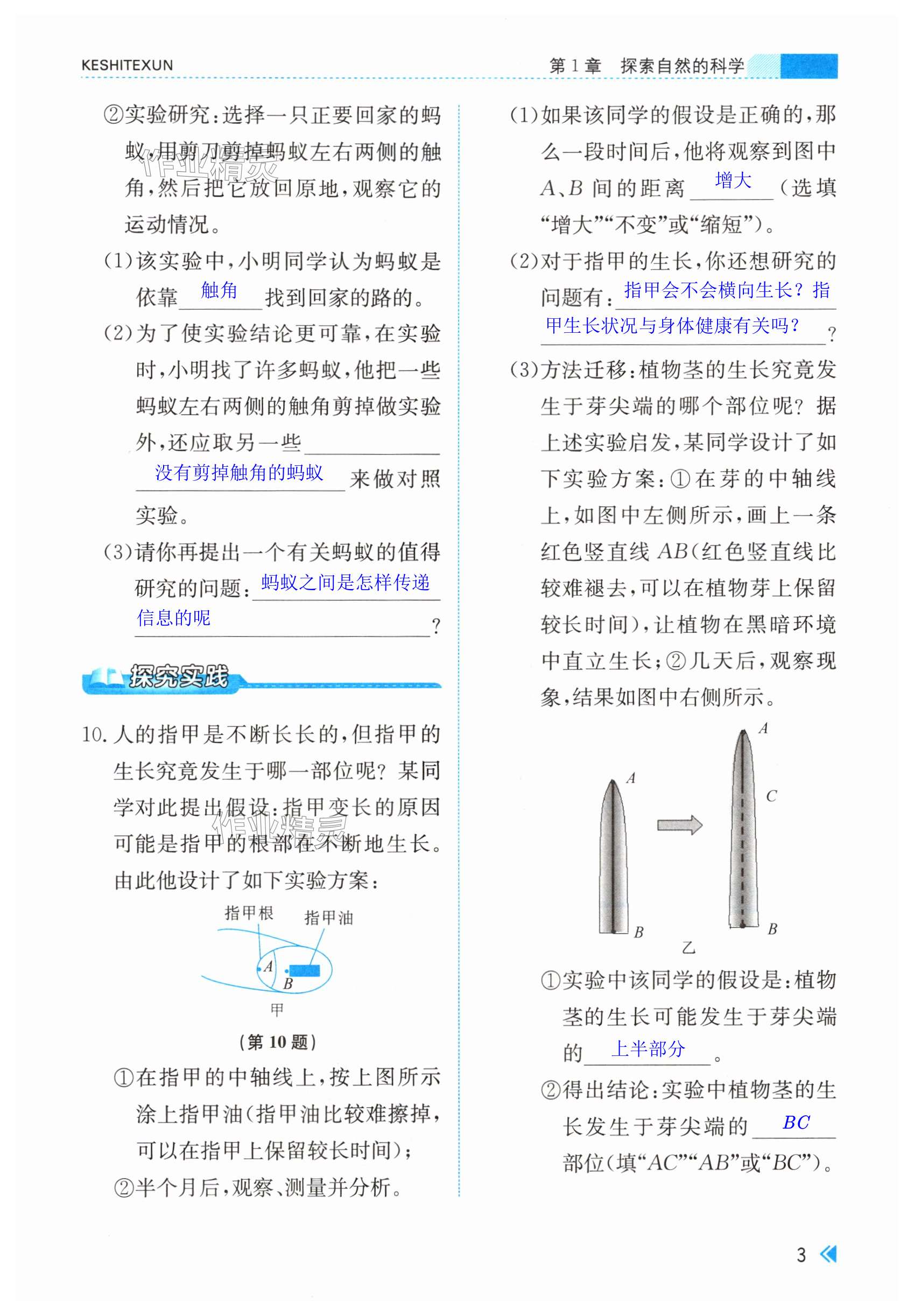 注:目前有些书本章节名称可能整理的还不是很完善,但都是按照顺序排列的,请同学们按照顺序仔细查找。练习册 2024年课时特训七年级科学上册浙教版 答案主要是用来给同学们做完题方便对答案用的,请勿直接抄袭。