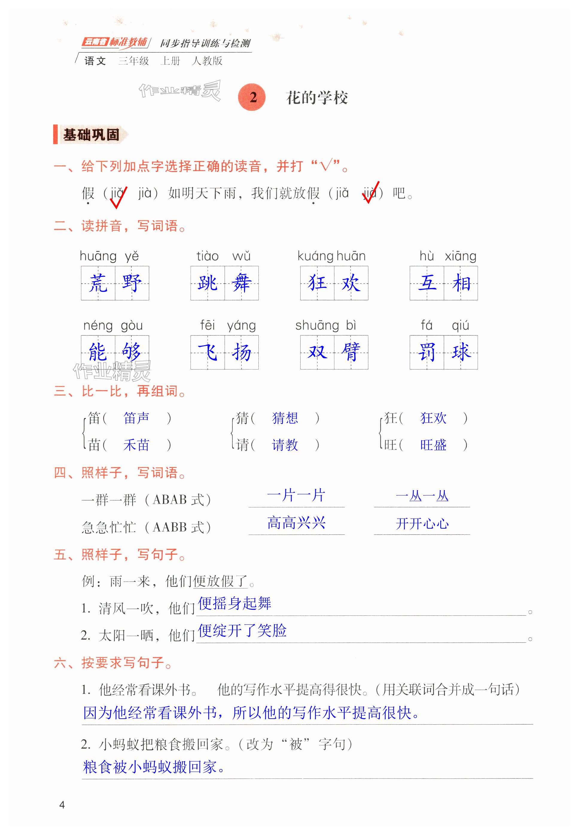 注:目前有些书本章节名称可能整理的还不是很完善,但都是按照顺序排列的,请同学们按照顺序仔细查找。练习册 2024年云南省标准教辅同步指导训练与检测三年级语文上册人教版 答案主要是用来给同学们做完题方便对答案用的,请勿直接抄袭。