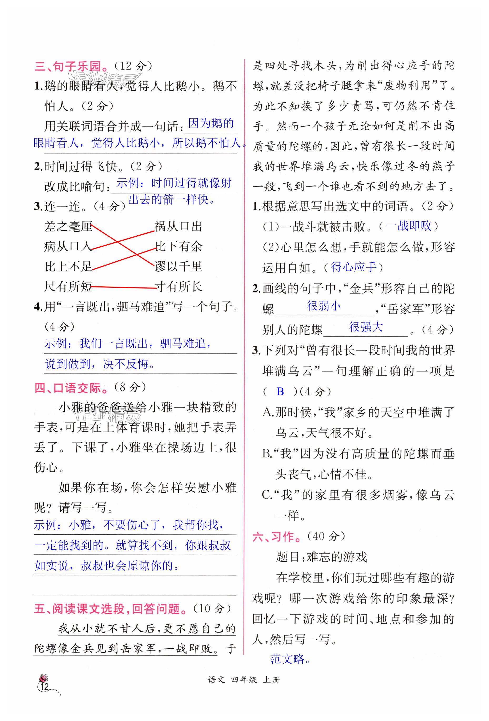 注:目前有些书本章节名称可能整理的还不是很完善,但都是按照顺序排列的,请同学们按照顺序仔细查找。练习册 2024年同步导学案课时练四年级语文上册人教版 答案主要是用来给同学们做完题方便对答案用的,请勿直接抄袭。