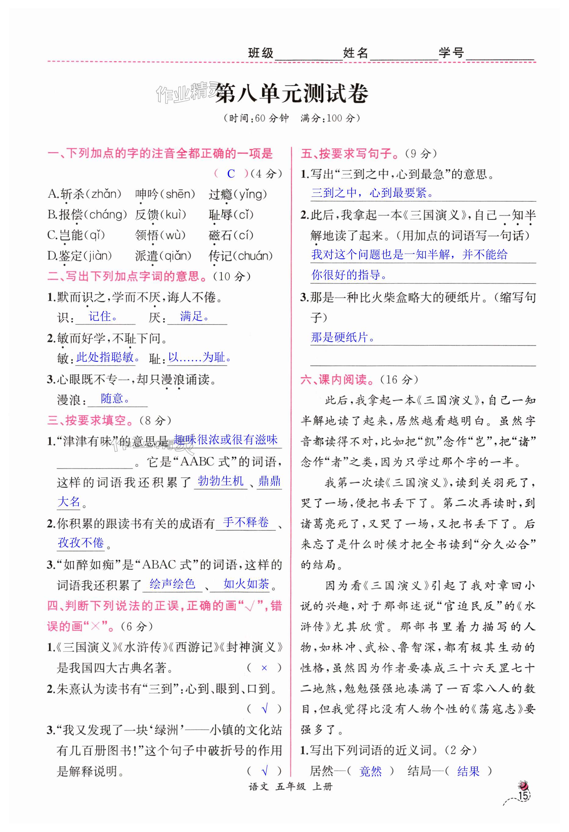 注:目前有些书本章节名称可能整理的还不是很完善,但都是按照顺序排列的,请同学们按照顺序仔细查找。练习册 2024年同步导学案课时练五年级语文上册人教版 答案主要是用来给同学们做完题方便对答案用的,请勿直接抄袭。