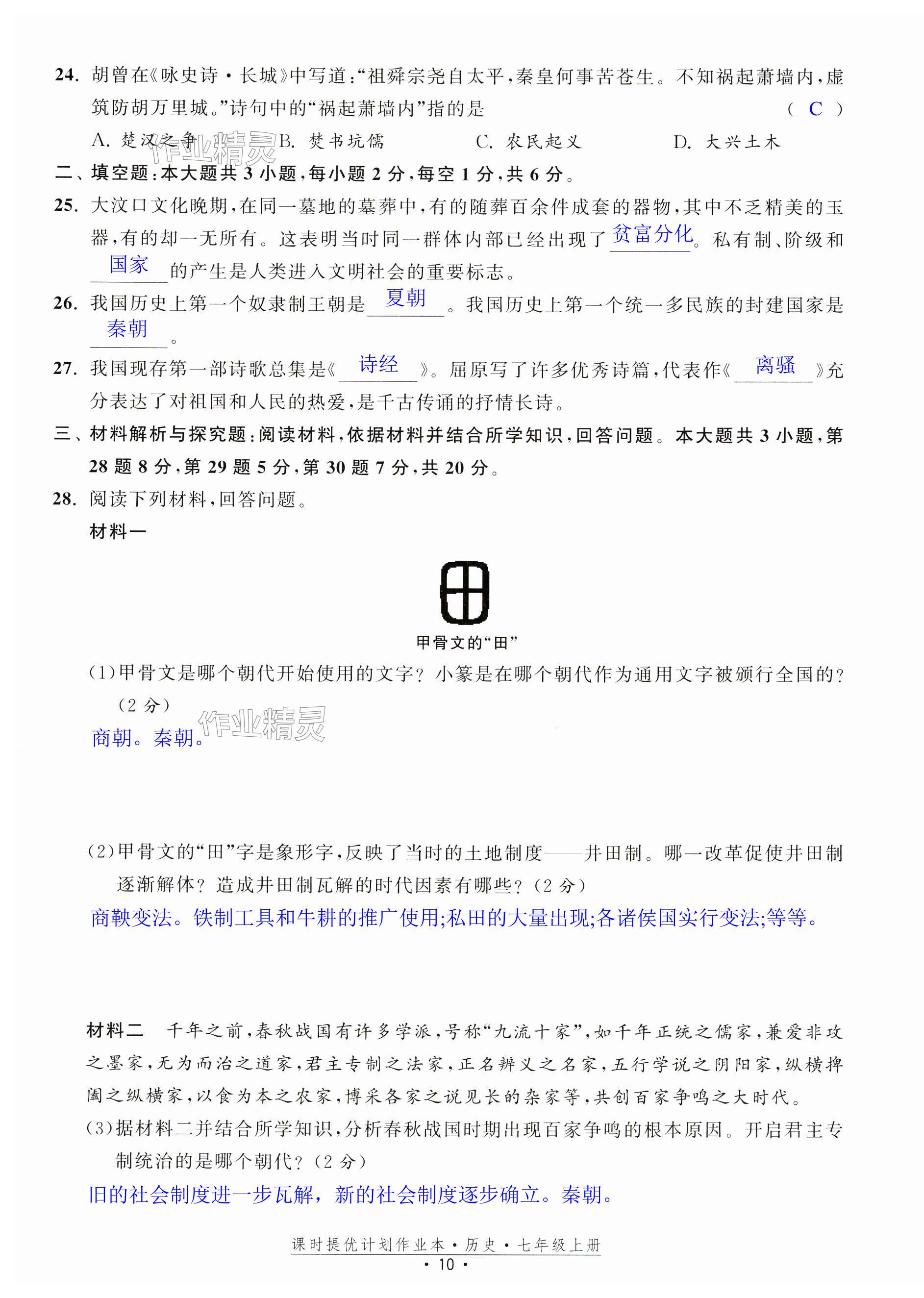 注:目前有些书本章节名称可能整理的还不是很完善,但都是按照顺序排列的,请同学们按照顺序仔细查找。练习册 2024年课时提优计划作业本七年级历史上册人教版 答案主要是用来给同学们做完题方便对答案用的,请勿直接抄袭。