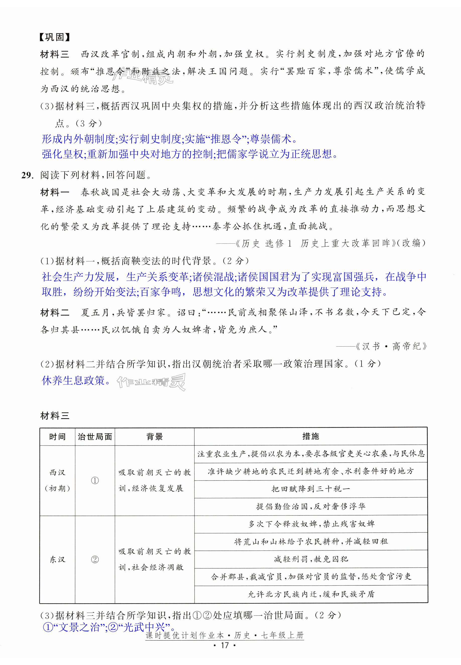 注:目前有些书本章节名称可能整理的还不是很完善,但都是按照顺序排列的,请同学们按照顺序仔细查找。练习册 2024年课时提优计划作业本七年级历史上册人教版 答案主要是用来给同学们做完题方便对答案用的,请勿直接抄袭。