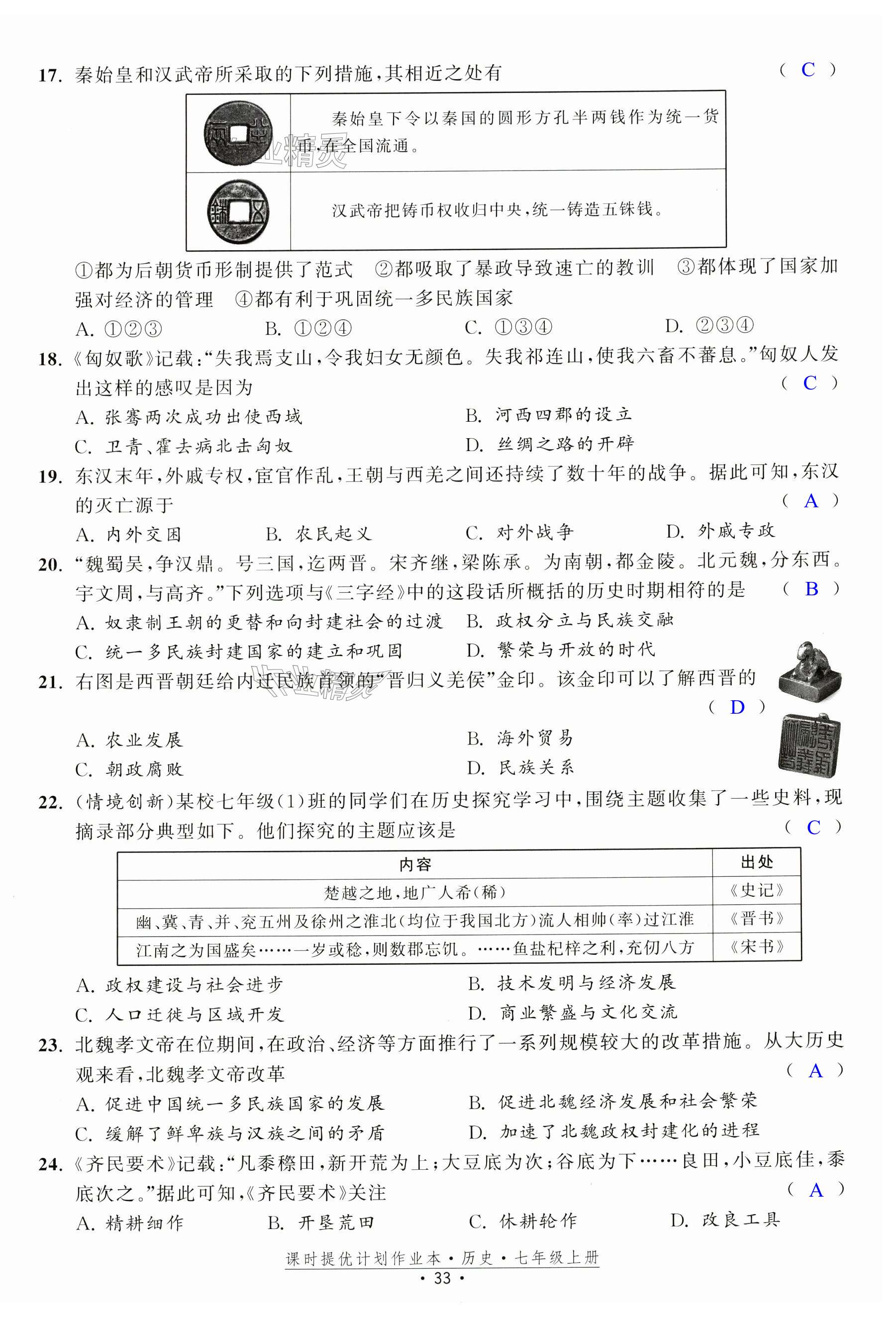 注:目前有些书本章节名称可能整理的还不是很完善,但都是按照顺序排列的,请同学们按照顺序仔细查找。练习册 2024年课时提优计划作业本七年级历史上册人教版 答案主要是用来给同学们做完题方便对答案用的,请勿直接抄袭。