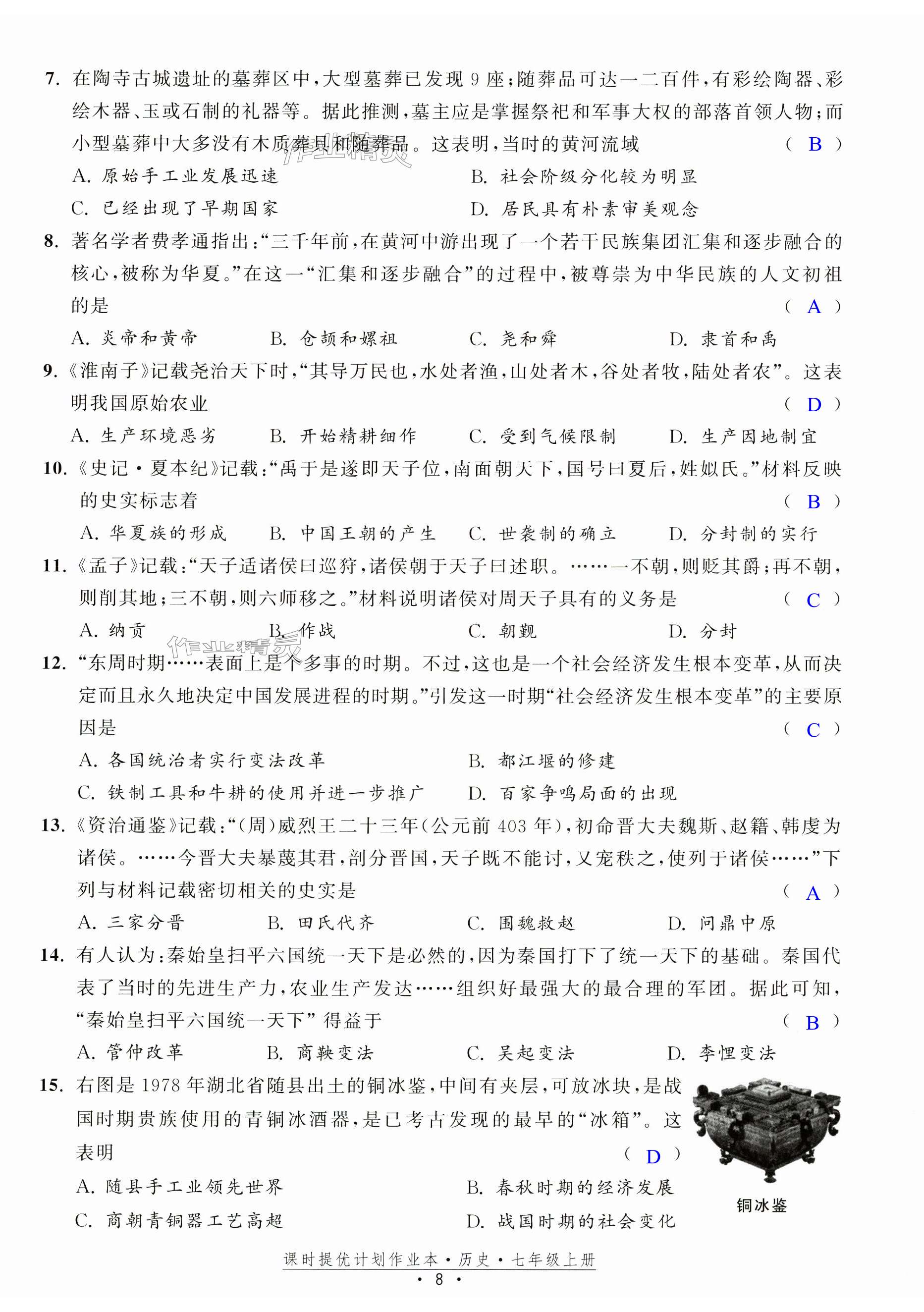注:目前有些书本章节名称可能整理的还不是很完善,但都是按照顺序排列的,请同学们按照顺序仔细查找。练习册 2024年课时提优计划作业本七年级历史上册人教版 答案主要是用来给同学们做完题方便对答案用的,请勿直接抄袭。