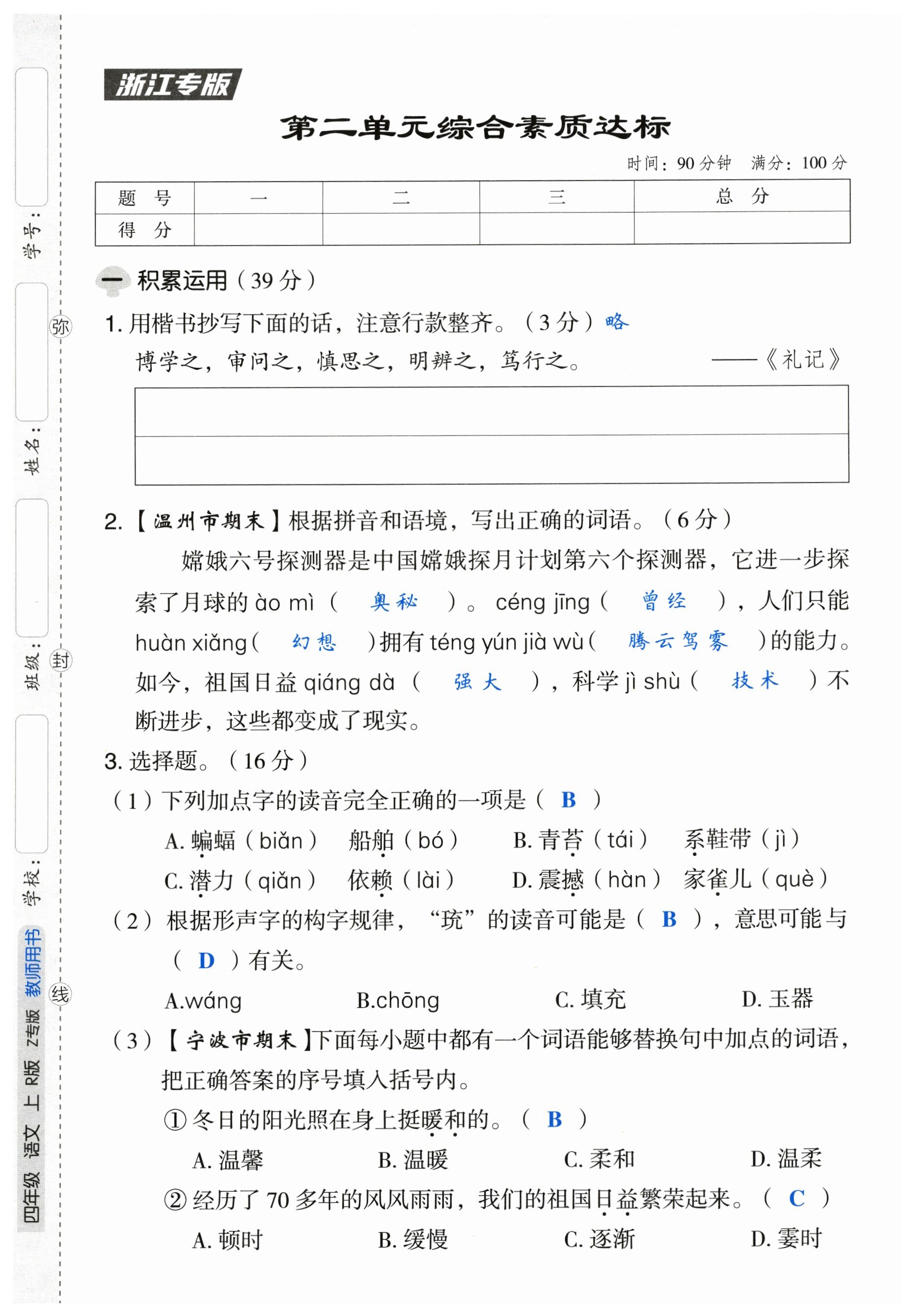 注:目前有些书本章节名称可能整理的还不是很完善,但都是按照顺序排列的,请同学们按照顺序仔细查找。练习册 2024年综合应用创新题典中点四年级语文上册人教版浙江专版 答案主要是用来给同学们做完题方便对答案用的,请勿直接抄袭。