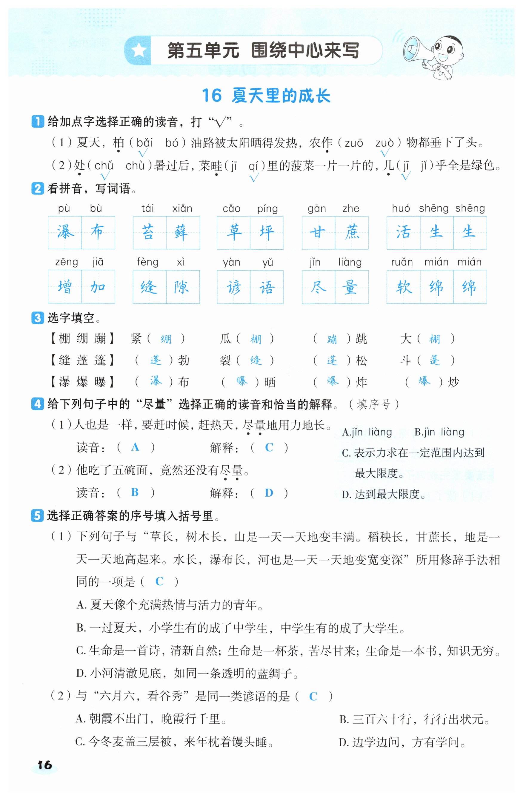 注:目前有些书本章节名称可能整理的还不是很完善,但都是按照顺序排列的,请同学们按照顺序仔细查找。练习册 2024年综合应用创新题典中点六年级语文上册人教版浙江专版 答案主要是用来给同学们做完题方便对答案用的,请勿直接抄袭。