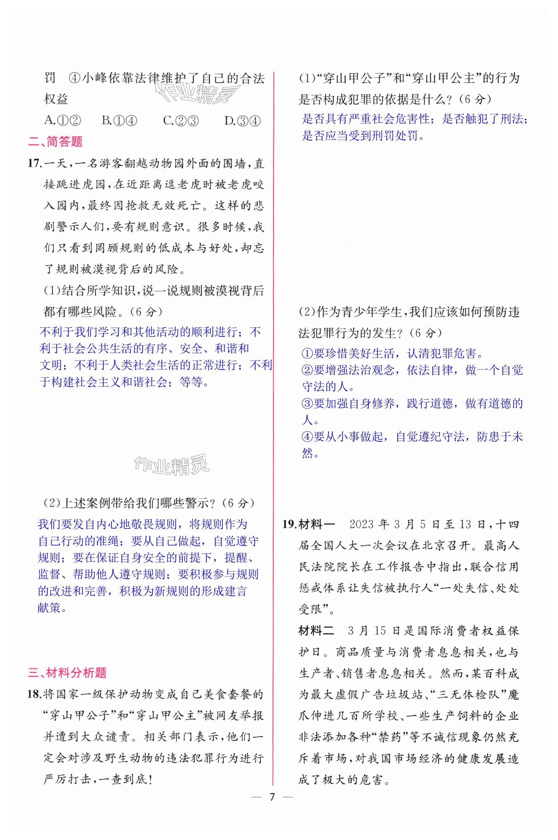 注:目前有些书本章节名称可能整理的还不是很完善,但都是按照顺序排列的,请同学们按照顺序仔细查找。练习册 2024年同步导学案课时练八年级道德与法治上册人教版 答案主要是用来给同学们做完题方便对答案用的,请勿直接抄袭。