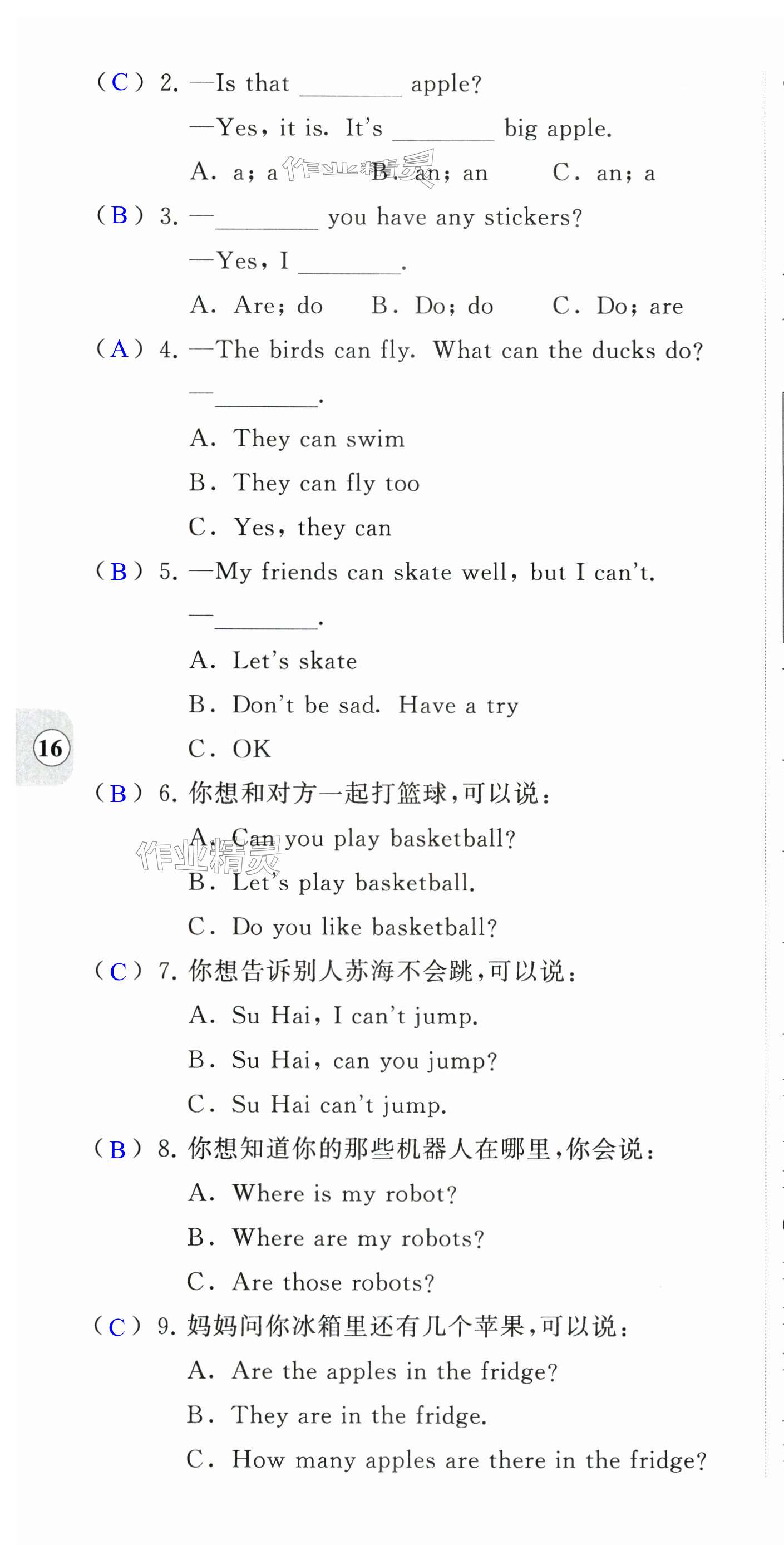 注:目前有些书本章节名称可能整理的还不是很完善,但都是按照顺序排列的,请同学们按照顺序仔细查找。练习册 2024年阳光互动绿色成长空间四年级英语上册提优版 答案主要是用来给同学们做完题方便对答案用的,请勿直接抄袭。