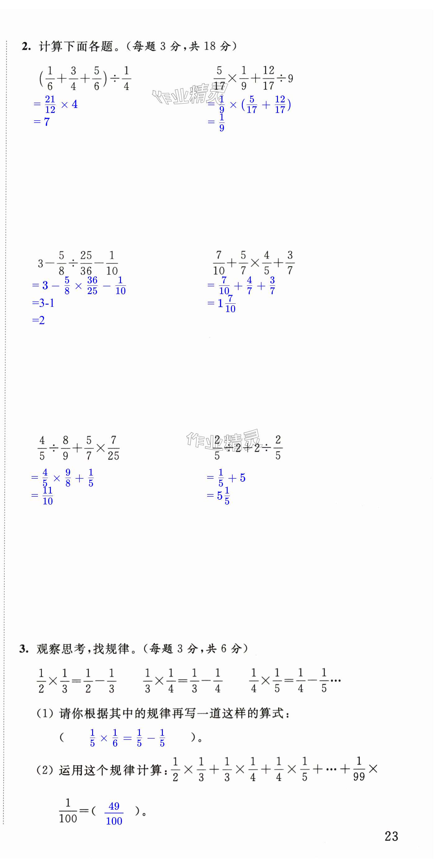 注:目前有些书本章节名称可能整理的还不是很完善,但都是按照顺序排列的,请同学们按照顺序仔细查找。练习册 2024年阳光互动绿色成长空间六年级数学上册提优版 答案主要是用来给同学们做完题方便对答案用的,请勿直接抄袭。