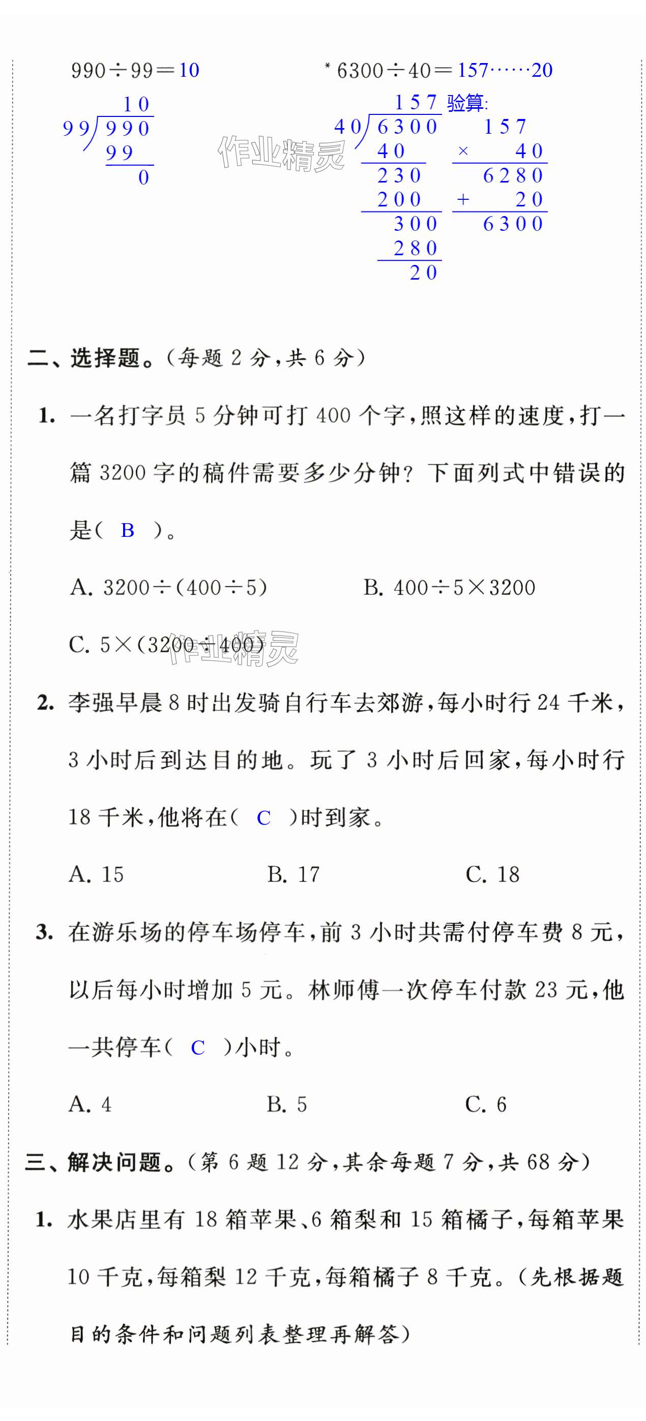 注:目前有些书本章节名称可能整理的还不是很完善,但都是按照顺序排列的,请同学们按照顺序仔细查找。练习册 2024年阳光互动绿色成长空间四年级数学上册提优版 答案主要是用来给同学们做完题方便对答案用的,请勿直接抄袭。