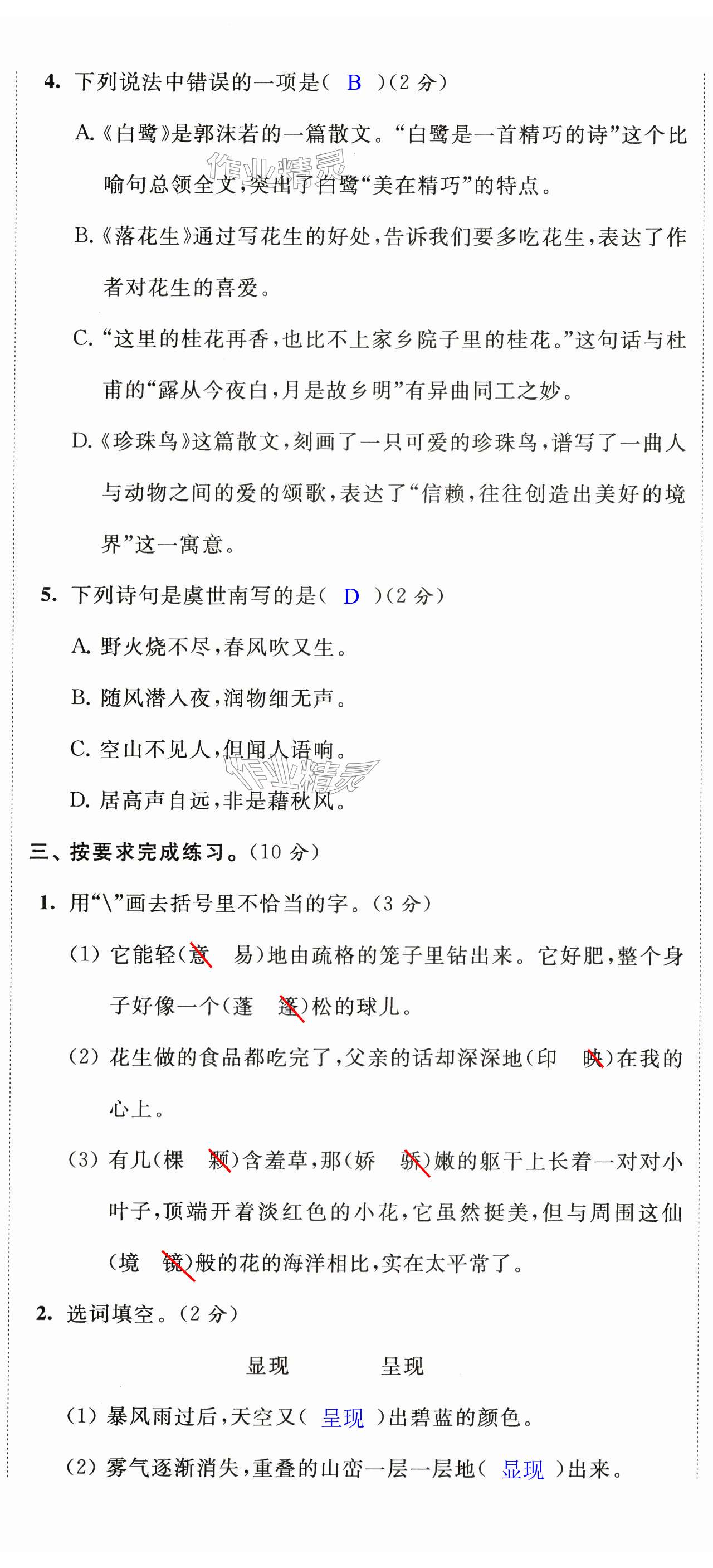 注:目前有些书本章节名称可能整理的还不是很完善,但都是按照顺序排列的,请同学们按照顺序仔细查找。练习册 2024年阳光互动绿色成长空间五年级语文上册提优版 答案主要是用来给同学们做完题方便对答案用的,请勿直接抄袭。