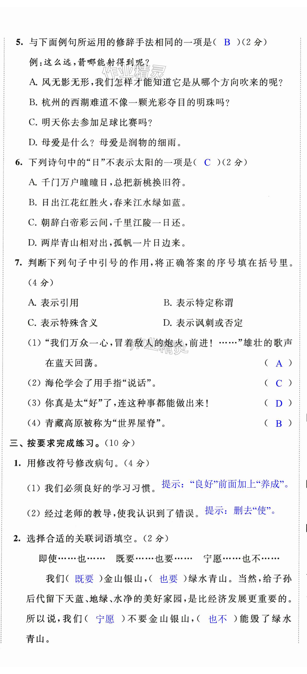 注:目前有些书本章节名称可能整理的还不是很完善,但都是按照顺序排列的,请同学们按照顺序仔细查找。练习册 2024年阳光互动绿色成长空间五年级语文上册提优版 答案主要是用来给同学们做完题方便对答案用的,请勿直接抄袭。