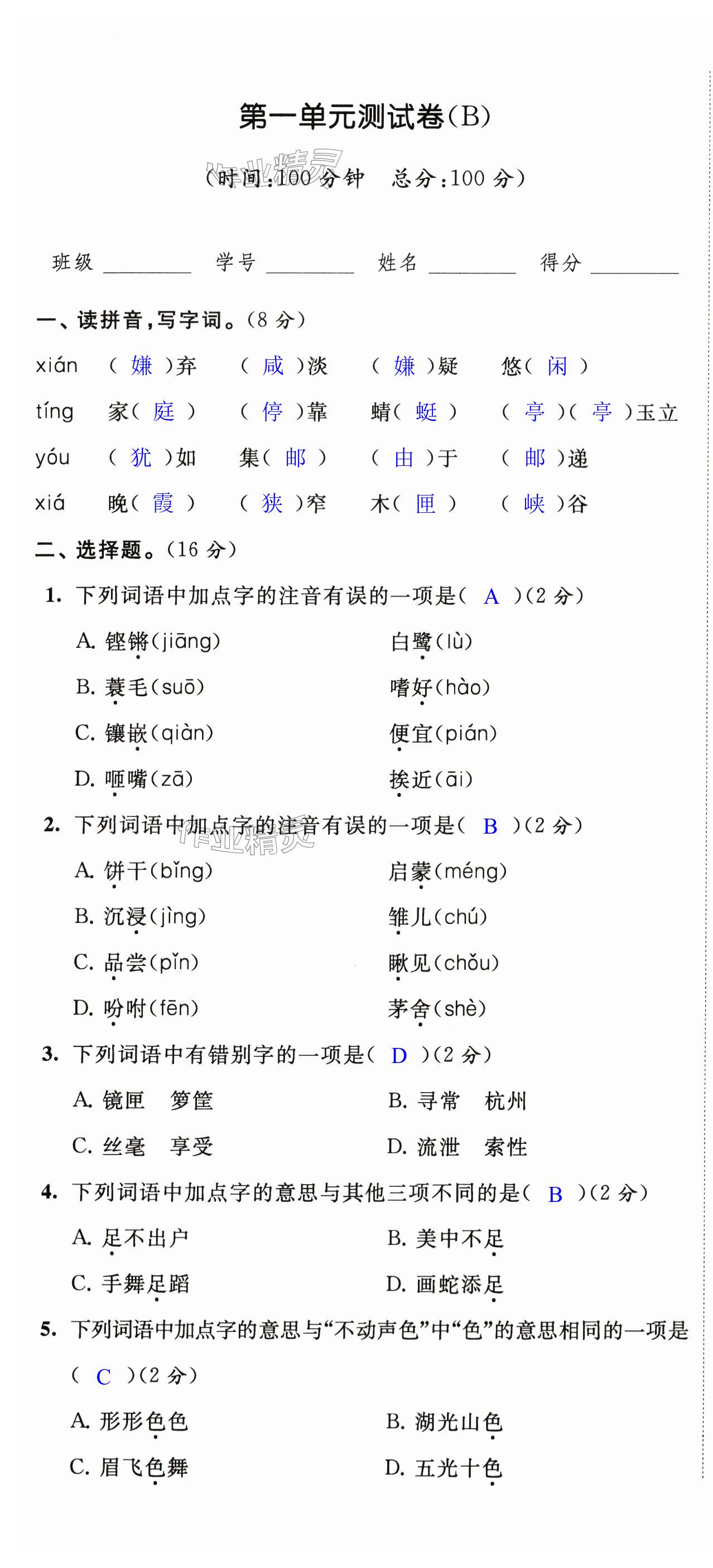 注:目前有些书本章节名称可能整理的还不是很完善,但都是按照顺序排列的,请同学们按照顺序仔细查找。练习册 2024年阳光互动绿色成长空间五年级语文上册提优版 答案主要是用来给同学们做完题方便对答案用的,请勿直接抄袭。