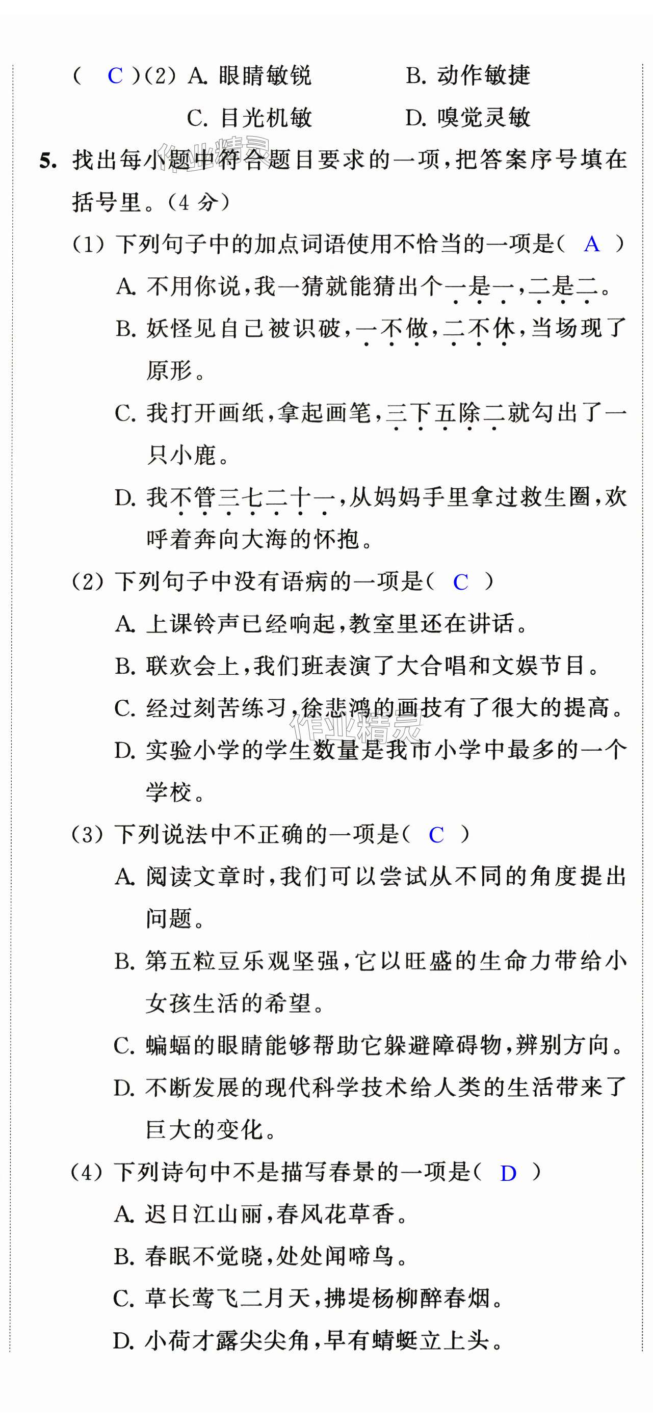 注:目前有些书本章节名称可能整理的还不是很完善,但都是按照顺序排列的,请同学们按照顺序仔细查找。练习册 2024年阳光互动绿色成长空间四年级语文上册人教版提优版 答案主要是用来给同学们做完题方便对答案用的,请勿直接抄袭。